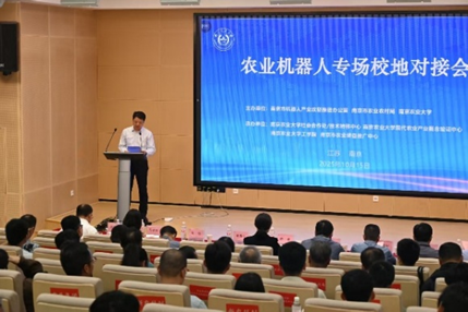 2025年10月15日,由南京市机器人产业攻坚推进办公室主办,南京农业大学承办的农业机器人校地专场对接会在南京农业大学(滨江校区)工学院报告厅隆重举行,前来与会的有:市机器人产业攻坚办、市农业农村局相关负责人,南京农业大学社会合作处、工学院、人工智能学院等相关领导及专家团队,各涉农区农业农村部门相关负责人,新农集团及其下属企业技术负责人,各相关涉农板块报名企业以及南创投、东南基金等投资机构代表。作为主办方之一,南京农业大学集中展示了多款自主研发的农业机器人,为智慧农业发展注入了新的科技动能。
