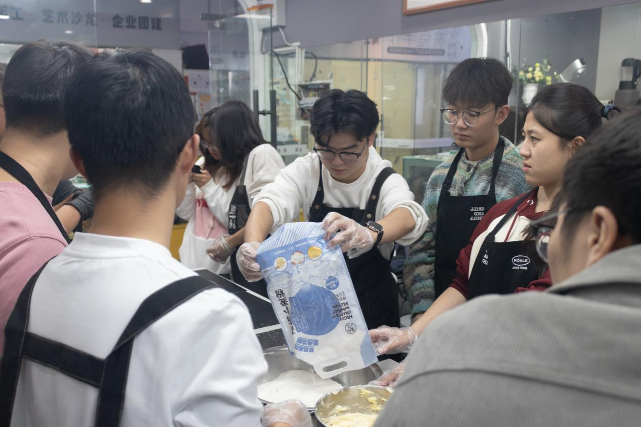 重阳节为长辈准备糕点是我国历史悠久的传统,源头可追溯至汉代,当时人们在重阳节食用 “蓬饵”(用蓬草籽与米粉制成的糕点),搭配登高、插茱萸习俗寄托对长辈健康长寿的祈愿,唐代后 “重阳糕” 形制更丰富,逐渐成为传递孝心的载体;此次重阳实践活动前,同学们分工协作、默契配合制作糕点,在调整细节的过程中把对退休老教师的敬意深深融入每一块糕点,最终将新鲜出炉的糕点细心装入定制礼盒,既是对这一传统的当代延续,也为此次实践活动提前积攒了满含心意的温情。