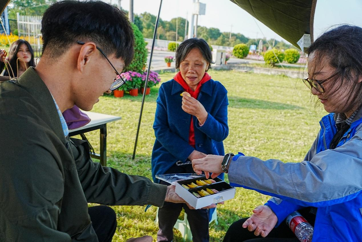 她的语气里没有波澜,却让听的人都静了下来 —— 有人攥紧笔记本,有人轻点头。风裹着菊香掠过,没人刻意打破这份静,可每个人心里却像被熨帖着,慢慢懂了 “踏实” 不是空话,也渐渐明白了 “把论文写在祖国大地上” 到底该往哪走。