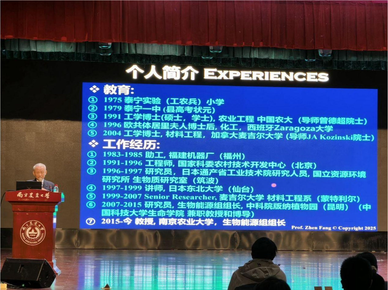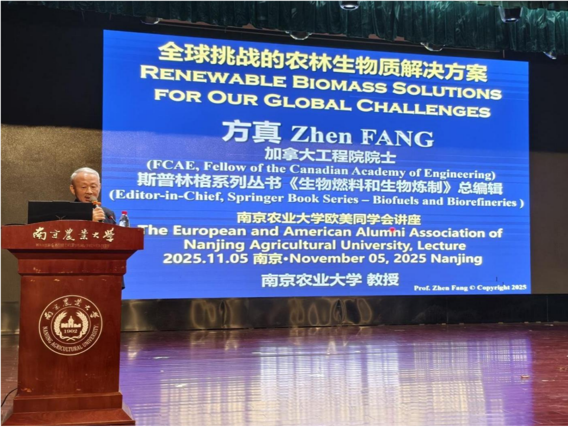 秋意渐浓,桂香满园。近日,南京农业大学工学院为全体2025级新生举办了一场别开生面的入学专题报告。学院特邀加拿大工程院院士、工学院方真教授担任主讲人,为初入大学的学子们带来题为《全球挑战的农林生物质》的“科研第一课”。这场关于绿色能源的“科学盛宴”,不仅拓宽了新生们的学术视野,更在他们心中悄然种下了“科研报国”的种子。