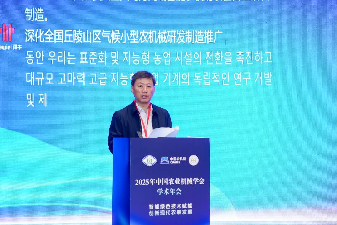 11月7日至10日,以“智能绿色技术赋能 创新现代农装发展”为主题的中国农业机械学会学术年会在南京召开。大会邀请到中国科学院任露泉院士,中国工程院罗锡文院士、陈学庚院士、赵春江院士、沈其荣院士等多位行业领军专家出席。中国农业机械工业协会原会长陈志研究员,江苏省科学技术协会副主席夏军,中国农机院集团有限公司党委书记、董事长马敬春,韩国农业机械学会理事长金赫柱教授等领导嘉宾参加开幕式。开幕式由中国农业机械学会理事长苑严伟主持。