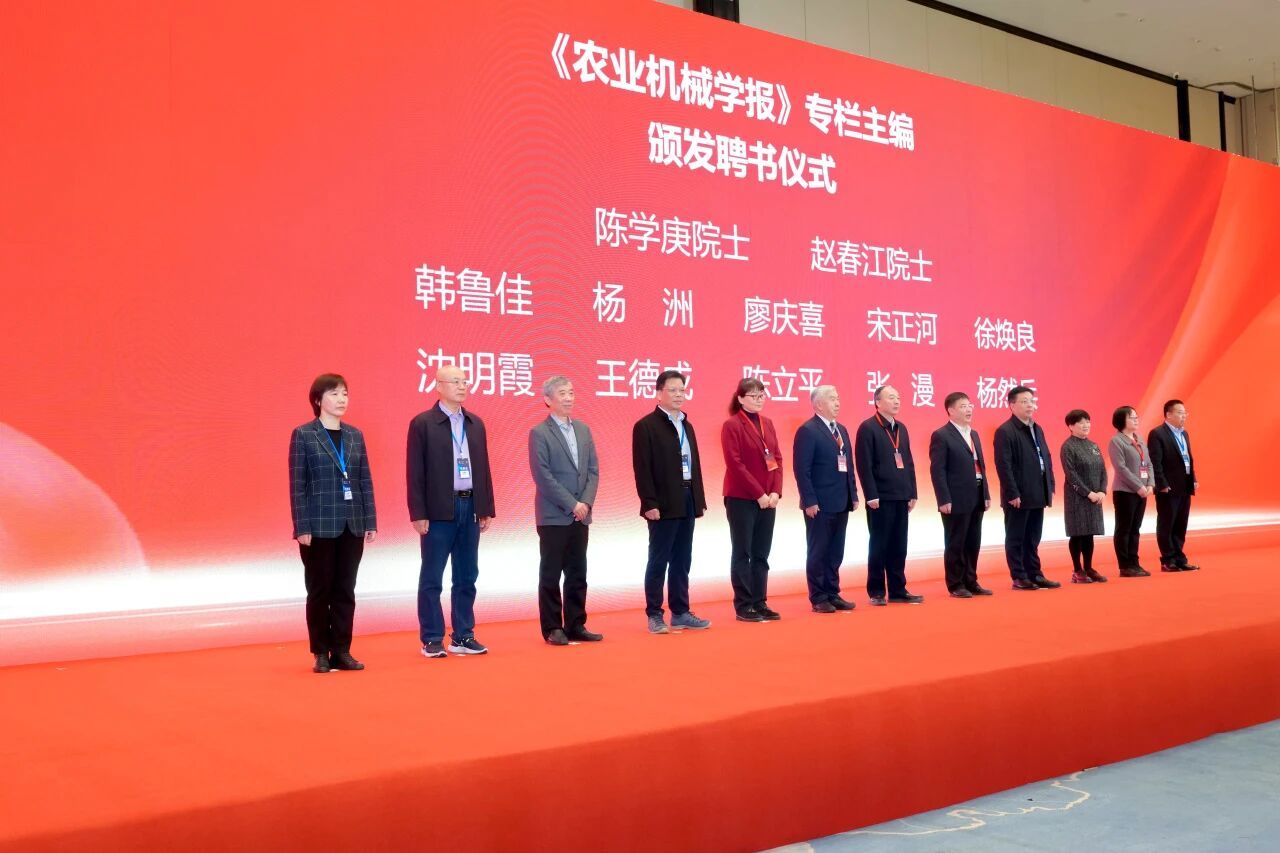 大会同期举办了中国农业机械学会会士授予、《农业机械学报》专栏主编聘书发放及学报半月刊启动仪式。依据《中国农业机械学会会士工作条例》,于海业、毛罕平、杨敏丽、尚书旗4位教授当选2025年度会士。