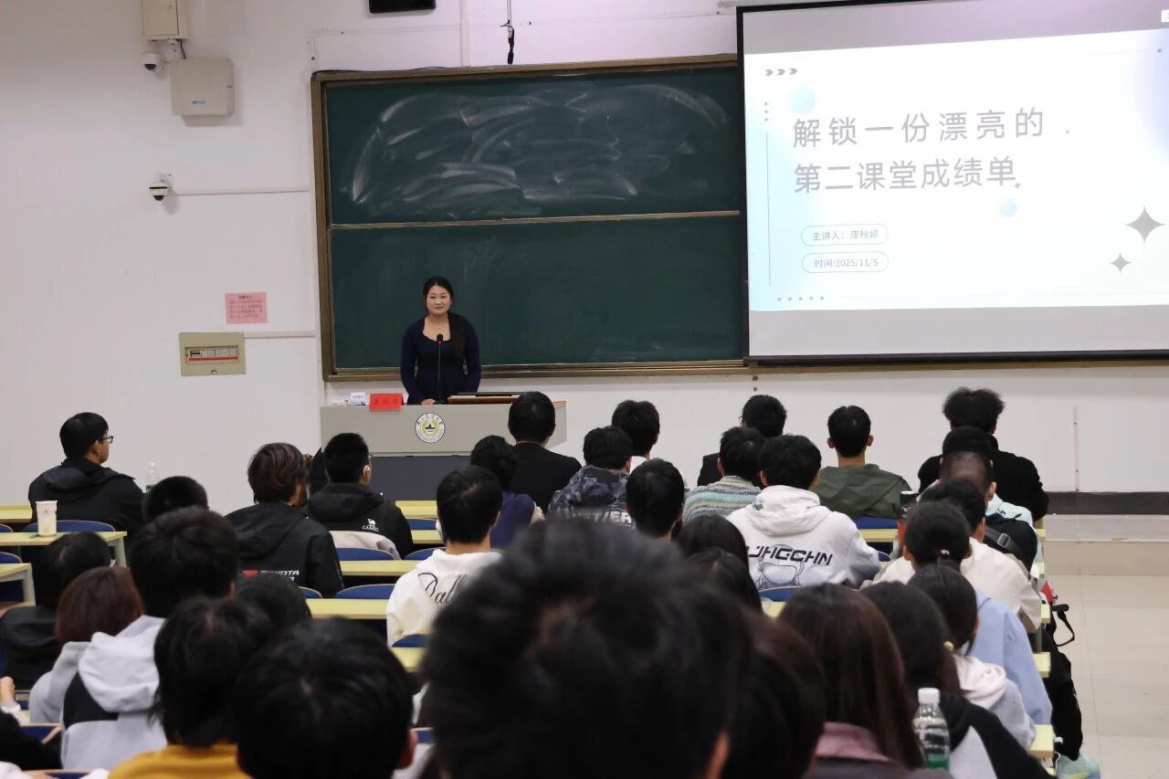 11月5日,机械2503/4班团务助理康秋婷为大家带来了主题为《带你解锁一份漂亮的第二课堂成绩单》的“新生十课”第五课。她帮新生讲解了毕业必备的“第二课堂”,介绍社会实践、美育实践等主要内容,指导新生如何获取学时、聪明选活动,并指导新生系统操作技巧。她为新生清晰梳理了第二课堂的关键信息与实操方法,助力大家高效规划相关实践、积累毕业所需学时。