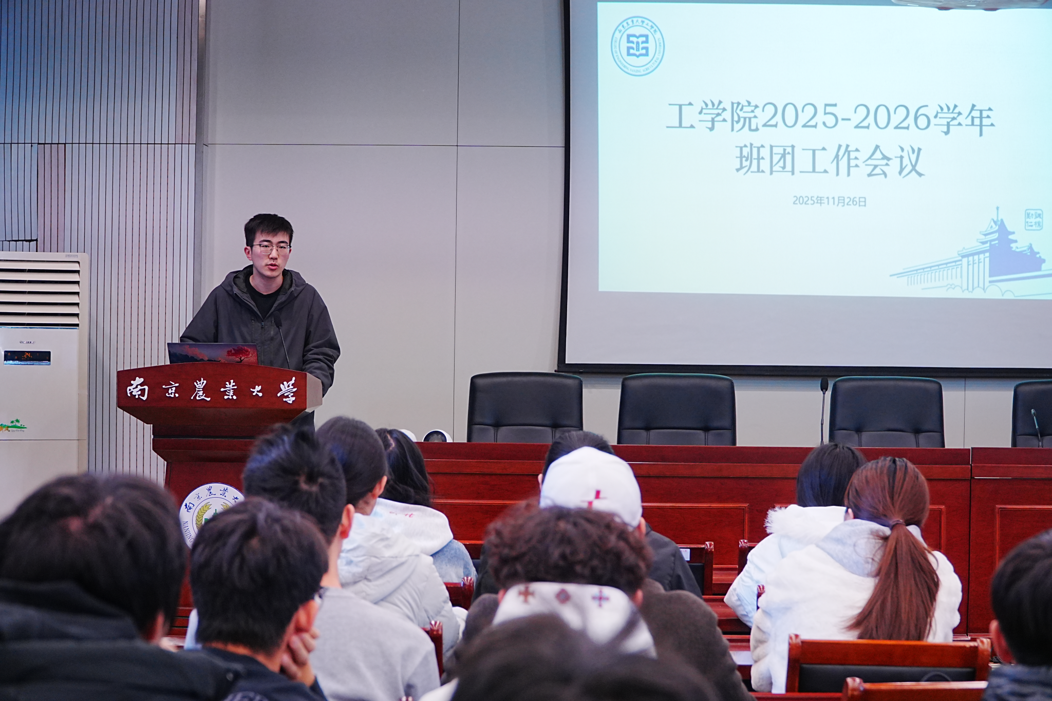 为加强基层班团组织建设,提升学生骨干的综合能力,并深化学生对农业机械化与智能化发展的认识,工学院于2025年11月26日下午在育贤楼C502组织召开工学院2025-2026学年班团工作会议。与会人员有工学院辅导员徐朝阳、康泽华樵明玉,人工智能学院青年讲师团成员戴阳以及各班级团支部书记、班长。