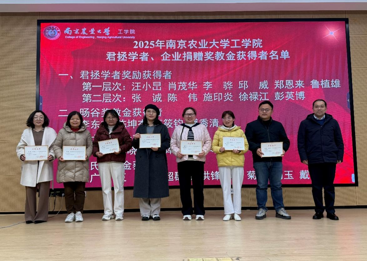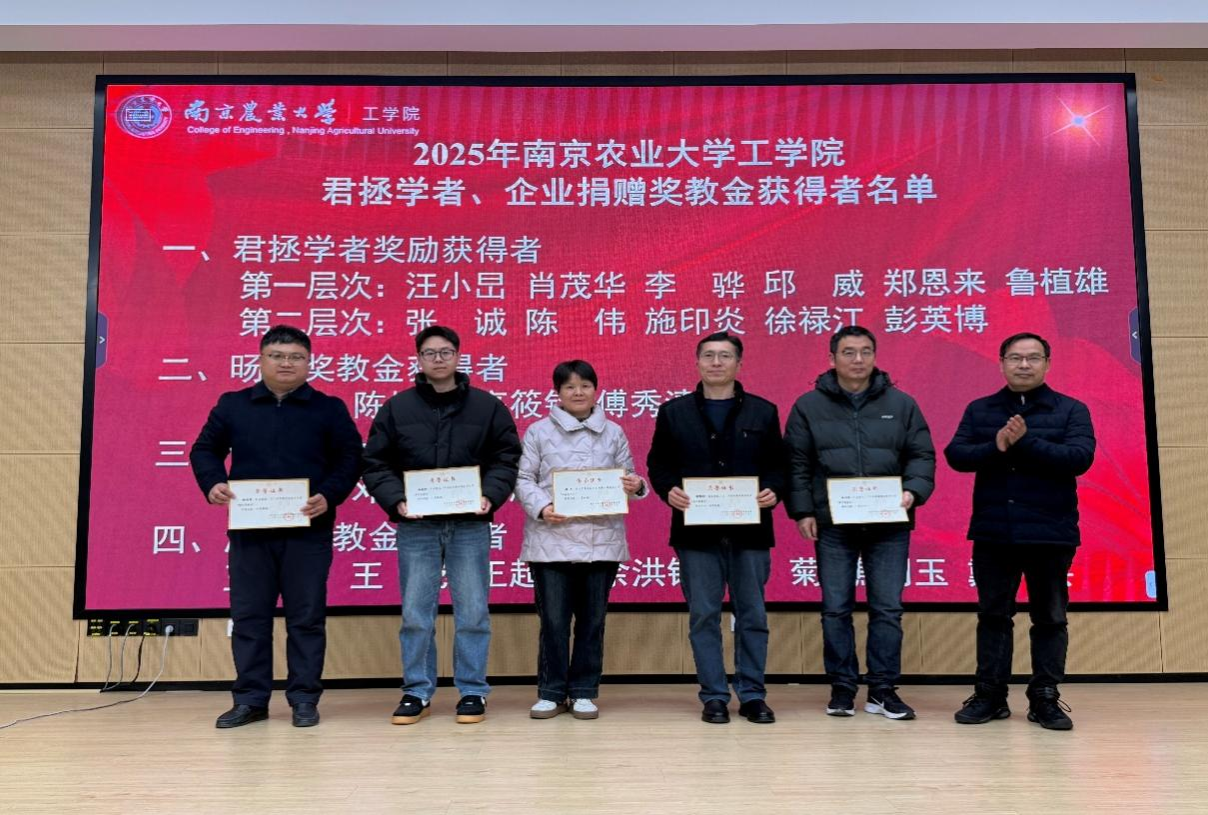 随后,大会举行了2025年度学院“君拯学者”及企业捐赠奖教金颁奖仪式。院领导分别为君拯学者获奖者、旸谷奖教金获得者、创力奖教金获得者以及温氏奖教金获得者颁发荣誉证书,表彰他们在教学科研、社会服务等方面的突出贡献,激励全体教职工以先进为榜样,立足岗位、再创佳绩。