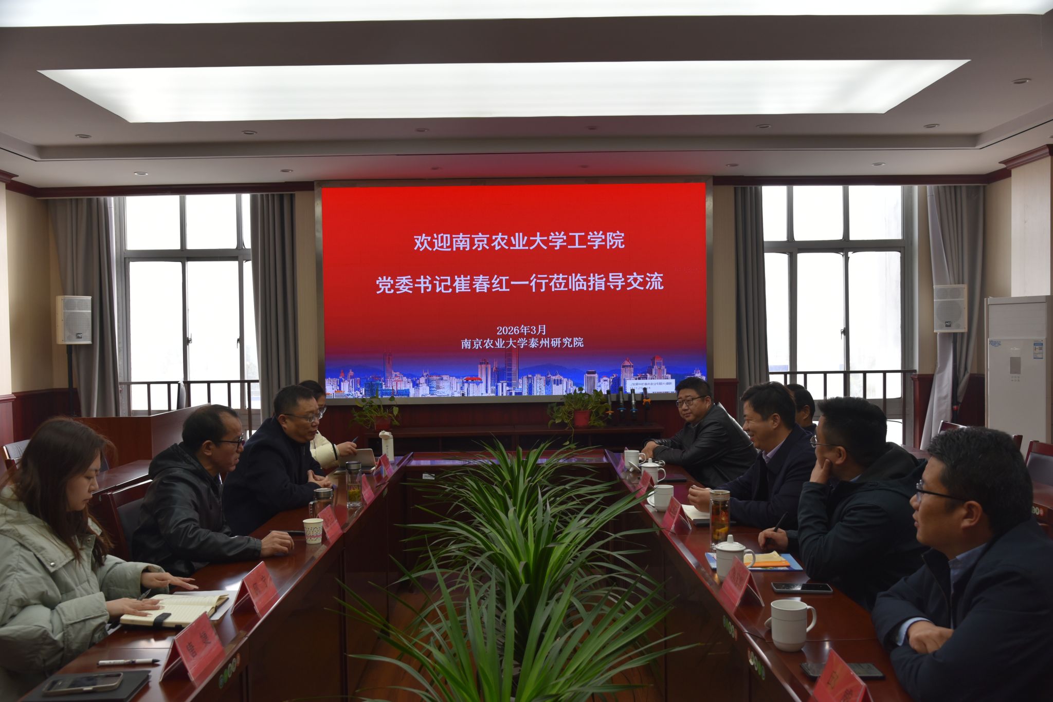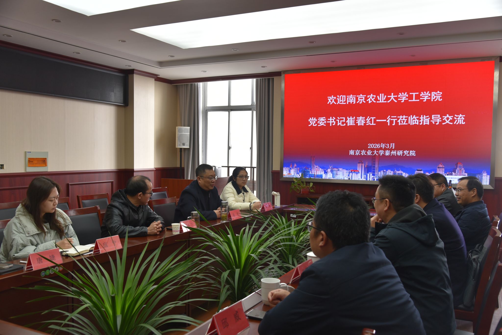 为进一步加强校内单位协同联动,学习校地合作、成果转化与人才培养先进经验,推动工学院学科建设与地方产业需求深度对接,3月9日,学院党委书记崔春红、副院长(主持工作)肖茂华、副院长薛金林、副院长邱威等一行5人赴南京农业大学泰州研究院开展专题调研交流。泰州研究院院长姜小三及相关负责人热情接待并陪同座谈交流。