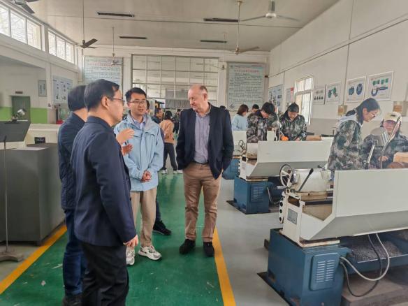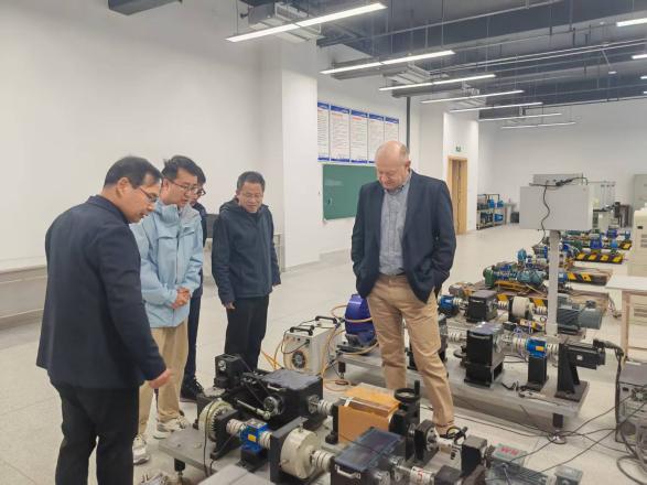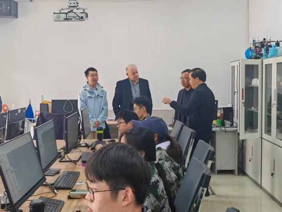 会后,英方代表团参观了我院机械工程专业实验室,薛金林详细介绍了实验室建设、课程设置及学生创新成果,让代表团直观了解我院教学科研实力,为后续课程衔接与实践合作奠定基础。