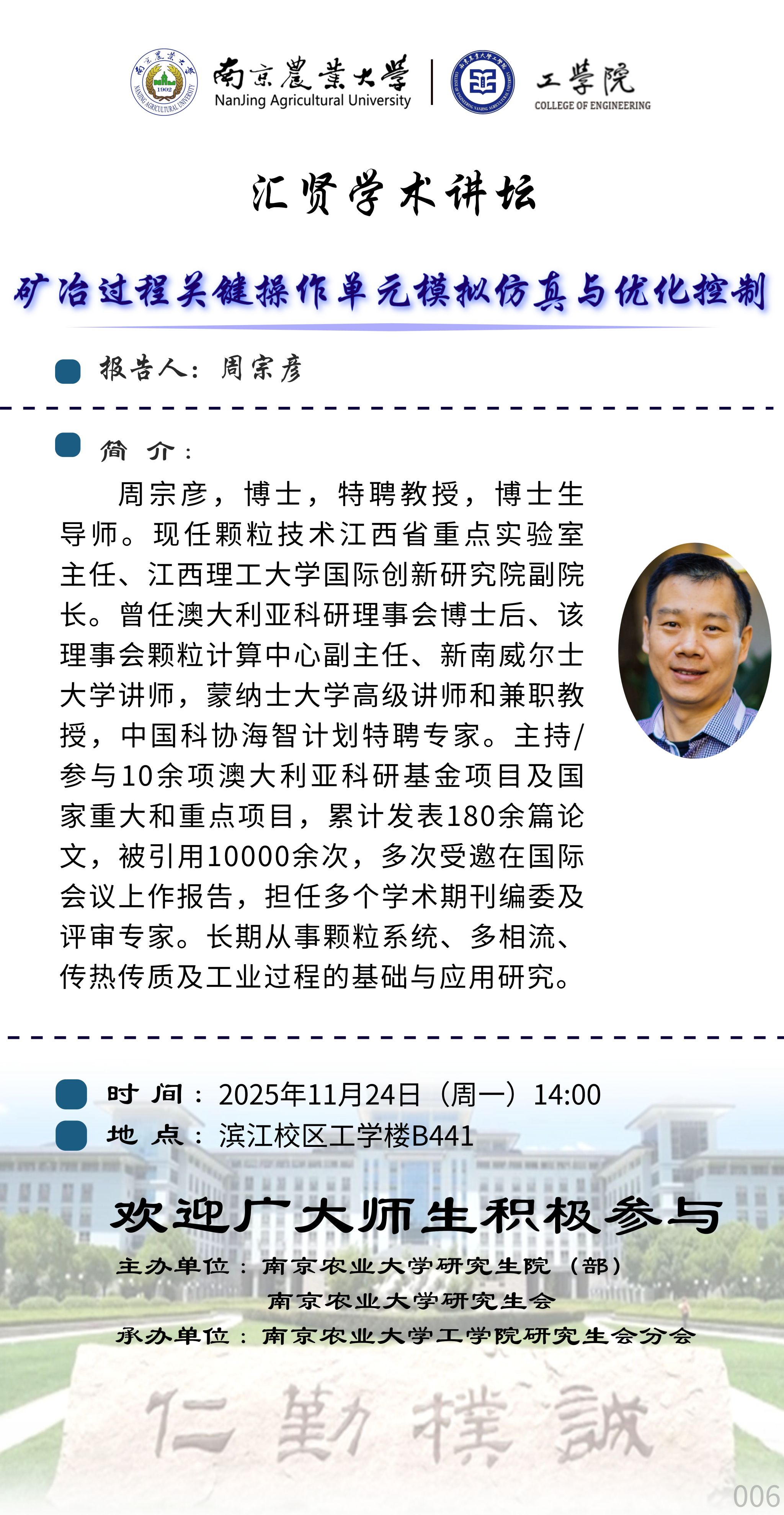 汇贤学术讲坛---矿冶过程关键操作单元模拟仿真与优化控制